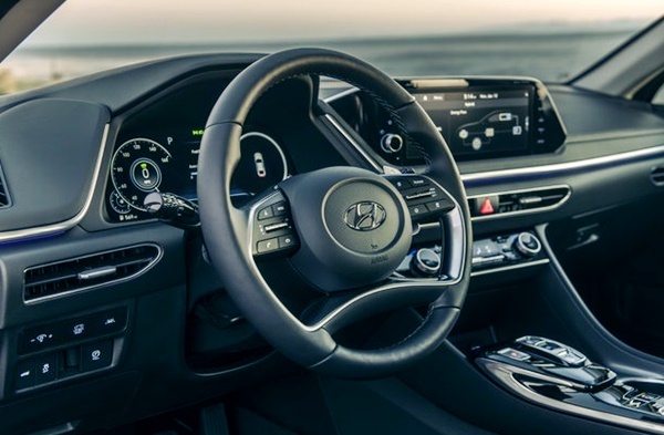 Inside, the Sonata’s design takes a step toward being shy, but still unique. The cab includes a classic-looking four-talk steering wheel, thin HVAC vents, shiny black accents, a thin dashboard with a focus on horizontal lines, a push-button shifter, a dash-top infotainment screen, and more. This design is all still relatively fresh, so we hope there will be no change by the time the Sonata 2023 arrives.